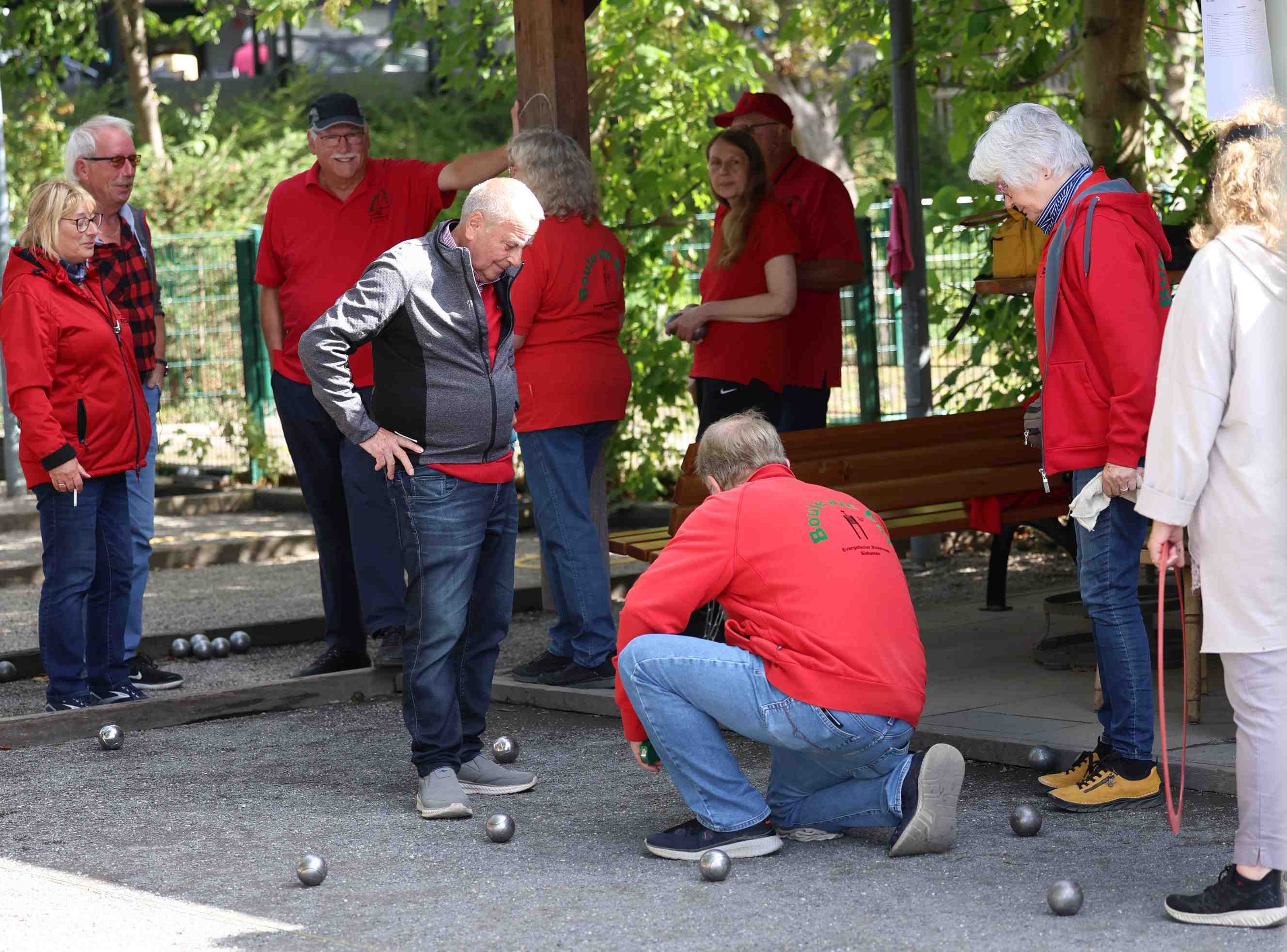 Als Auftakt wurden die neuen Boulebahnen inspiziert und das erste Spiel gemacht. Die Sonne machte uns ganz schön zu schaffen.